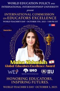 تكريم الأستاذة مهى شحادة بجائزة الريادة التربوية العالمية 2025 وبصمتها في تمكين المتعلمين. ​