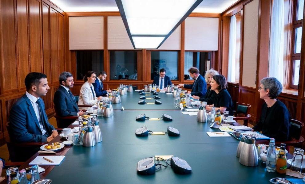 بحث وزير خارجية الإمارات عبد الله بن زايد مع نظيرته الألمانية أنالينا بيربوك، العلاقات الثنائية وسبل تعزيزها وعدداً من القضايا المشتركة وفي مقدمتها مسألة الطاقة.